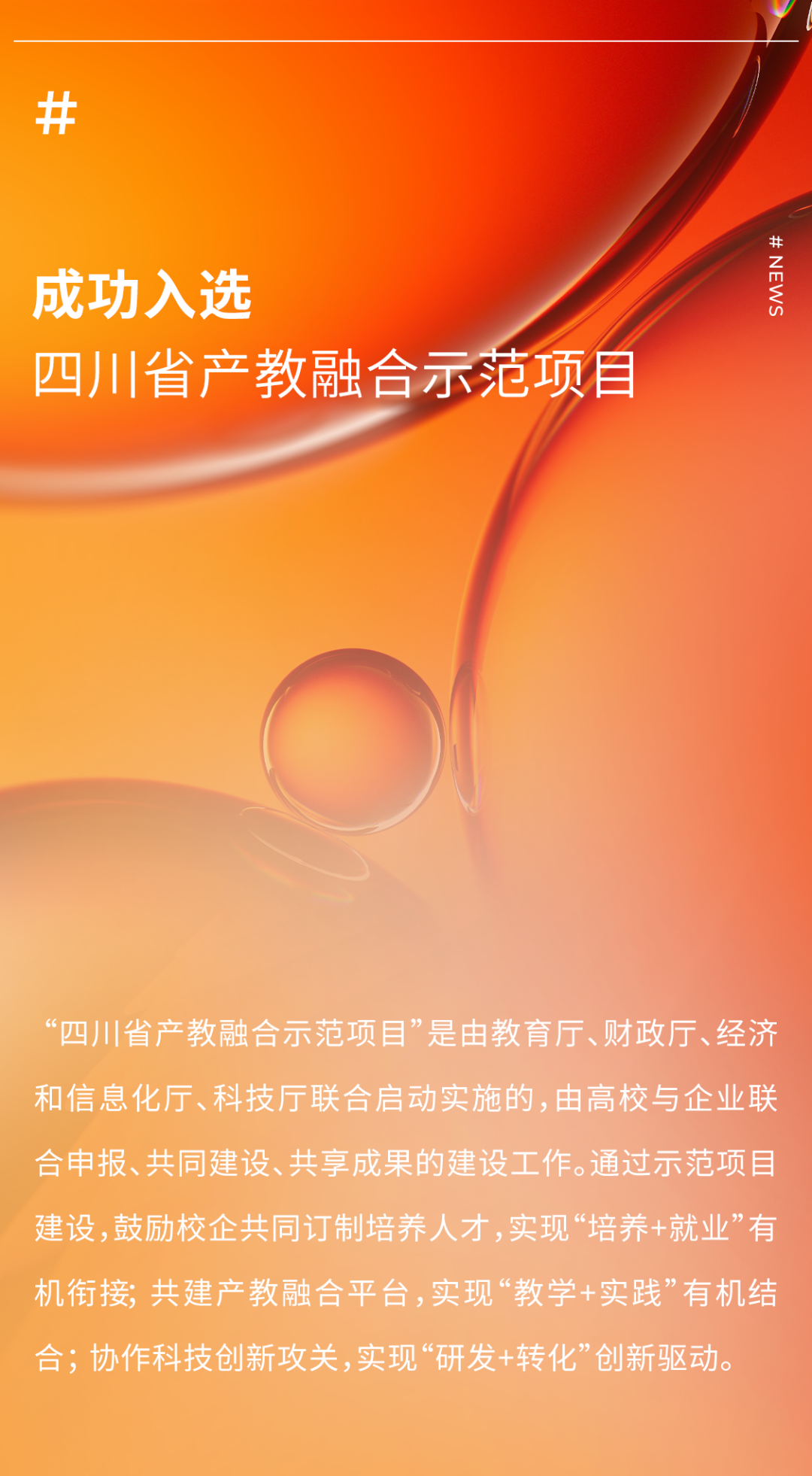 2024年10月,按照公平、公正、客观、择优的原则,经学校和企业联合申报,教育厅、财政厅、经济和信息化厅、科技厅共同组织专家对申报项目进行评审,确定了四川省2024年立项建设的15个产教融合示范项目名单。 迈克生物公司与学校联合开展的“体外诊断高性能装备产教科深度融合项目”,聚焦老年疾病负担过重、早筛成本高、高素质技术技能人才短缺等痛点,旨在培养懂康复、会检验、精技术的高素质技术技能人才、开展体外诊断关键技术攻关和成果转化。 通过项目实施,形成“三主体三段递进”的人才培养模式,为医药健康高性能装备产业提供人才支撑和智力支持。同时,建立“三新”转化体系,服务老年慢病重病的早期筛查、干预和康复需求,为应对人口老龄化提供四川方案。形成“1+1+N”产教联合体“六融六共”实体化运行机制,为产教科深度融合提供四川样本。 迈克生物践行"科技服务人类健康"的企业使命,与高校联手,培养新一代的技术精英,探索可持续发展的科研道路,让学术理论、检验技术与产业应用无缝链接,深化推进产教融合项目、推动医学进步、为社会创造价值。 |