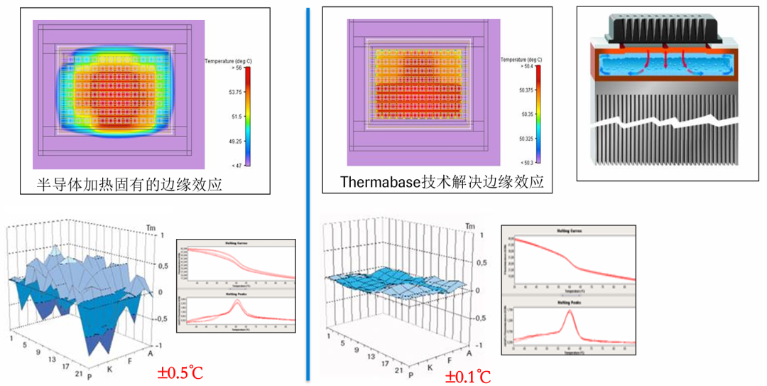 相比于梯度模块,该模块设计可带来:独立设置三种或更多不同温度的能力,以便使得每个独立的区域都能进行更好的温度控制,特别是在温度优化过程中。独立金属模块的绝热性阻止了模块之间的热传递。这就可实现更为精准的模块温度控制,确保模块之间实现真正线性的温度变化。