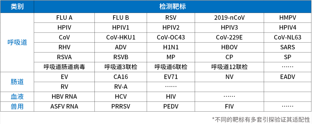 同时为了更好地响应客户需求、提升试剂性能和适配性,瀚海新酶建立并验证了包含:呼吸道、血液、肠道、兽用等领域多达上百个靶标的体系和严格的考核标准,以不断优化RNA全预混试剂的各项性能。