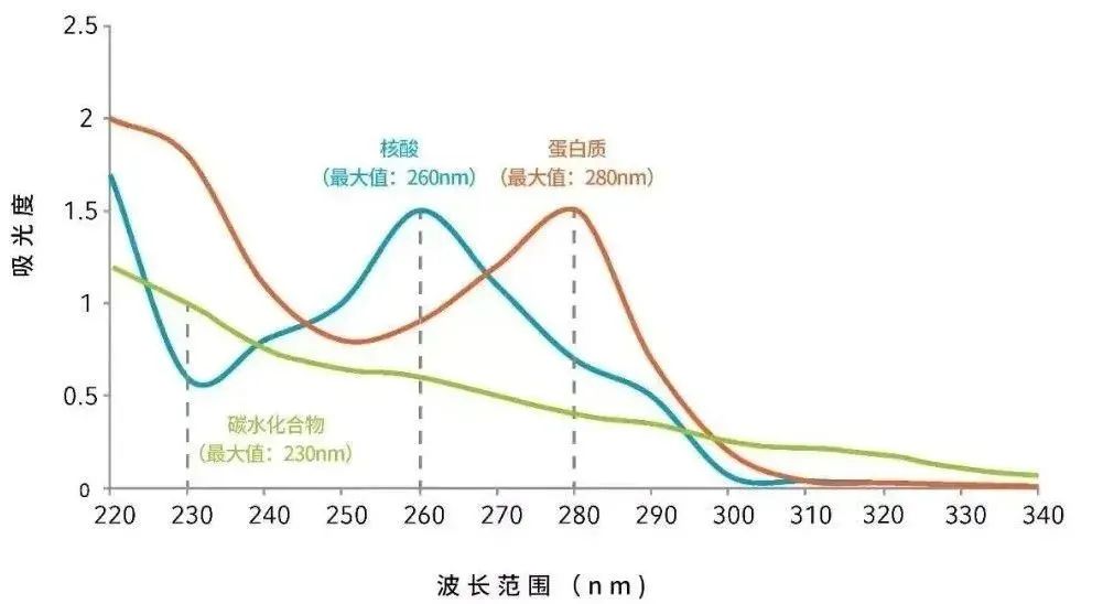 核酸质量评估是分子生物学和生物技术领域中一项重要的步骤,主要用于确认提取的DNA或RNA是否适合后续实验(如PCR、测序、克隆等)。以下是核酸质量评估的几个关键方面: 01 核酸浓度测定方法 分光光度法 核酸分子中的碱基(嘌呤和嘧啶)在紫外光区,特别是在260nm处,具有强烈的吸收特性。通过测定核酸溶液在260nm处的吸光度(A260),并应用朗伯比尔定律(A=εcb),可以计算出核酸的浓度。该方法广泛应用于分子生物学实验中的核酸浓度测定,包括PCR产物分析、质粒提取效果评估、RNA提取质量检测等。 通过测量260 nm处的吸光度来估算核酸的浓度: DNA浓度计算:A260 × 稀释倍数 × 50 µg/mL。 RNA浓度计算:A260 × 稀释倍数 × 40 µg/mL。 荧光染料检测法 荧光光度法基于荧光染料与核酸分子结合后产生的荧光信号进行测定。荧光染料(如SYBR Green、PicoGreen等)在特定波长的光源激发下能发出荧光,荧光强度与核酸分子的数量成正比,通过测定荧光强度,可以定量核酸的浓度。荧光光度法广泛应用于微量核酸的定量检测,如用于基因表达分析、病毒载量监测、基因组学研究等领域。 虽然该方法比吸光度分光光度法更昂贵,但此法对目标样本更灵敏、更精确并且可能具有特异性,适合微量和低浓度样本。目前常用的仪器如Qubit: 荧光定量PCR(qPCR) 通过定量PCR检测样品中是否存在残留的蛋白质或其他抑制剂。高纯度的样品应在PCR反应中表现出良好的扩增效率和较低的Ct值。 荧光定量PCR法通过在PCR反应体系中加入荧光染料或荧光探针,实时监测荧光信号。随着PCR反应的进行,荧光信号积累并达到阈值(Ct值),该Ct值与起始模板浓度的对数呈线性反比关系,利用Ct值和标准曲线,代入回归方程,计算出样本的核酸含量。该方法广泛应用于基因表达定量分析,病原体检测与鉴定,遗传病诊断,药物研发等领域。通过定量PCR检测样品中是否存在残留的蛋白质或其他抑制剂。高纯度的样品应在PCR反应中表现出良好的扩增效率和较低的Ct值。 02 核酸纯度测定 分光光度法 使用紫外分光光度计测定核酸样品的吸光度比值是最常见的方法。通常测定的是260 nm、280 nm和230 nm的吸光度。 A260/A280 比值:用于评估蛋白质污染。纯净的DNA样品比值在1.8-2.0之间,RNA样品则在2.0左右。如果比值低于这些范围,说明有蛋白质污染。 A260/A230 比值:用于评估其他有机物或盐的污染。纯净的核酸样品比值应在2.0-2.2之间。如果低于2.0,可能存在多糖、酚类或盐类污染。 03 核酸完整性 凝胶电泳法 这是评价核酸样品完整性和降解情况的常用方法。样品电泳后,根据条带的清晰度和完整性来判断核酸的质量。如电泳后点样孔较亮甚至点样孔与目标带之间有明显拖尾现象,说明杂质(例如蛋白质)残留较多。如在4kb-5 kb甚至再高分子量处出现条带,说明有明显DNA残留。 DNA电泳:完整的基因组DNA应表现为一条高分子量的条带,无明显拖尾。 RNA电泳:完整的RNA样品应显示出清晰的28S和18S rRNA条带,28S条带的强度应约为18S的两倍。