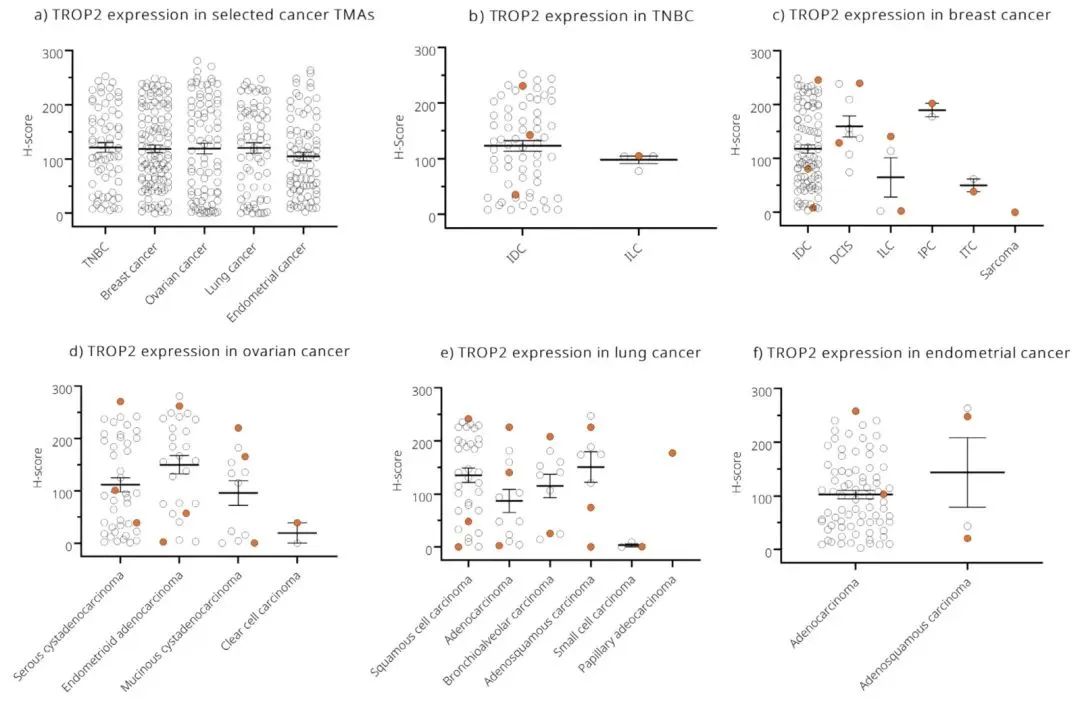 图6 抗TROP2重组抗体 [EPR20043](👉🏻ab214488)在不同癌肿中IHC染色H-score分析