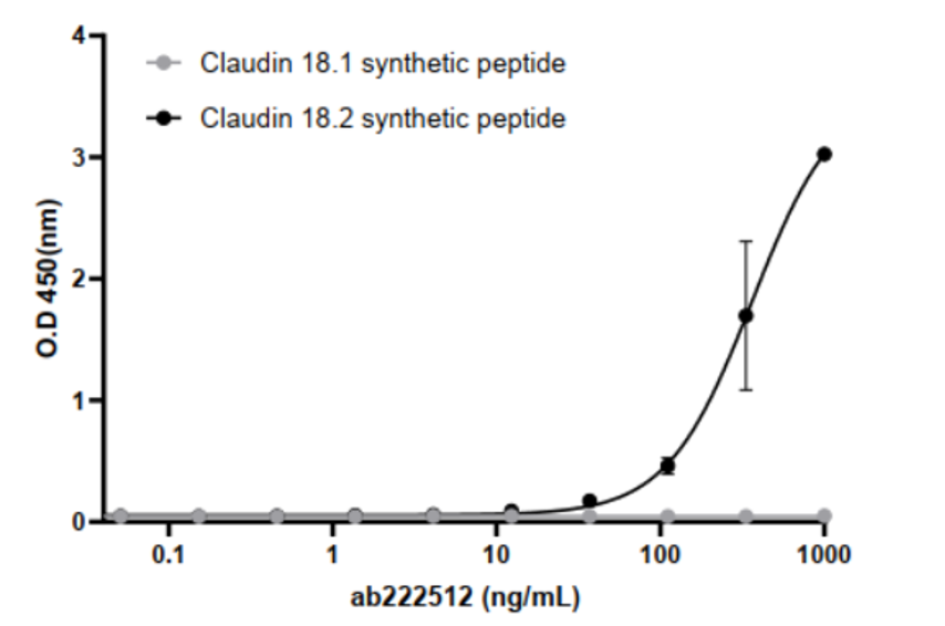 图4 Indirect ELISA显示抗Claudin 18.2重组抗体 [EPR19202](👉🏻ab222512)特异结合Claudin 18.2合成肽