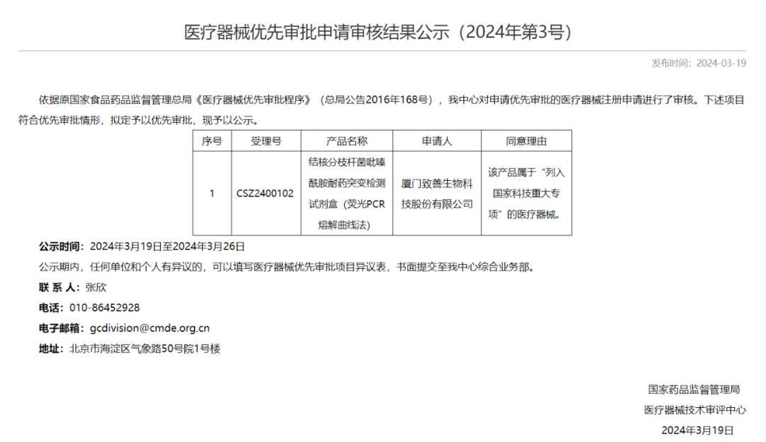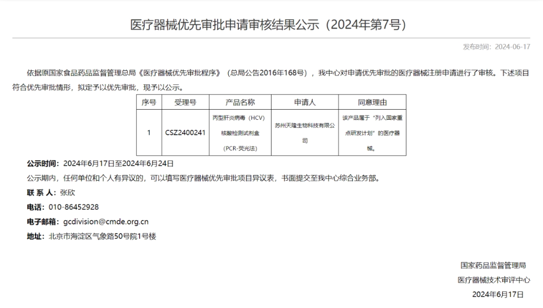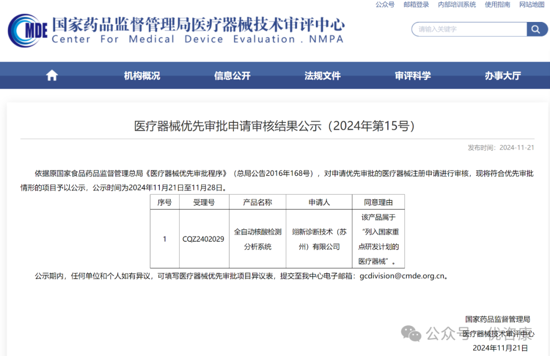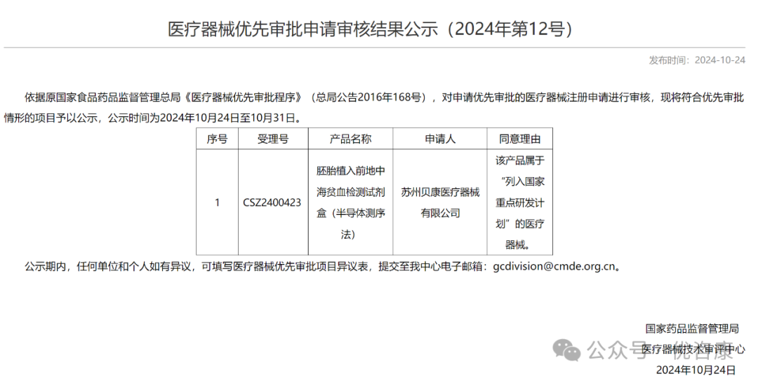11.21号,翊新诊断技术(苏州)有限公司一款IVD领域产品进入优先通道,其同意理由为“该产品属于“列入国家重点研发计划的医疗器械””, 这是今年第7款进入优先通道的IVD领域产品,具体内容如下: 2024年其他优先审批IVD产品 截止到目前,共有7款IVD领域产品进入优先,其他6款产品内容如下: 2、FOLR1 (FOLR1-2.1) 抗体检测试剂(免疫组织化学法) 3、丙型肝炎病毒(HCV)核酸检测试剂盒(PCR-荧光法) 4、基因测序仪 5、人类肺癌11种突变基因检测试剂盒(多重荧光PCR法) 6、胚胎植入前地中海贫血检测试剂盒(半导体测序法) 来源:国家药品监督管理局医疗器械技术审评中心 |
