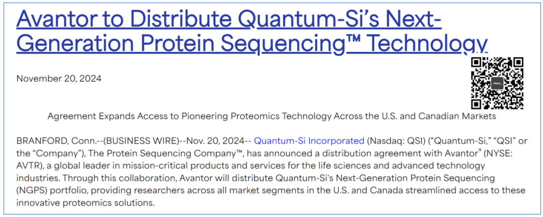 根据协议,Avantor将在美国和加拿大利用其渠道销售Quantum-Si的蛋白测序产品。