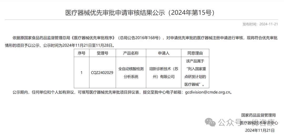 | 11.28号,北京万泰生物药业股份有限公司的“人类免疫缺陷病毒1+2型尿液抗体检测试剂盒(胶体金法)”进入优先通道,其同意理由为“该产品属于“列入国家科技重大专项的医疗器械””,这是今年第8款进入优先通道的IVD领域产品,其中6款产品的同意理由为:列入国家科技重大专项或者国家重点研发计划的医疗器械 1. 哪些产品可以进行优先注册? 根据《体外诊断试剂注册与备案管理办法》第七十二条满足下列情形之一的体外诊断试剂,可以申请适用优先注册程序: (一)诊断罕见病、恶性肿瘤,且具有明显临床优势,诊断老年人特有和多发疾病且目前尚无有效诊断手段,专用于儿童且具有明显临床优势,或者临床急需且在我国尚无同品种产品获准注册的医疗器械; (二)列入国家科技重大专项或者国家重点研发计划的医疗器械; (三)国家药品监督管理局规定的其他可以适用优先注册程序的医疗器械。 根据《医疗器械注册与备案管理办法》第七十三条满足下列情形之一的医疗器械,可以申请适用优先注册程序: (一)诊断或者治疗罕见病、恶性肿瘤且具有明显临床优势,诊断或者治疗老年人特有和多发疾病且目前尚无有效诊断或者治疗手段,专用于儿童且具有明显临床优势,或者临床急需且在我国尚无同品种产品获准注册的医疗器械; (二)列入国家科技重大专项或者国家重点研发计划的医疗器械; (三)国家药品监督管理局规定的其他可以适用优先注册程序的医疗器械。 目前进入优先通道的8款产品,其中6款产品的同意理由为:列入国家科技重大专项或者国家重点研发计划的医疗器械;1款产品同意理由为:诊断或者治疗罕见病、恶性肿瘤且具有明显临床优势;1款产品同意理由为:临床急需且在我国尚无同品种产品获准注册的医疗器械。 2. 2024年其他7款优先审批IVD产品 截止到目前,共有8款IVD领域产品进入优先,其他7款产品内容如下: |