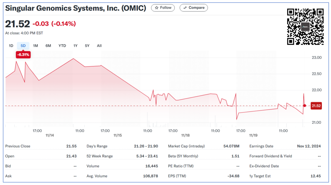 注1:https://investor.singulargenomics.com/news-releases/news-release-details/singular-genomics-reports-recent-updates-and-third-quarter-2024