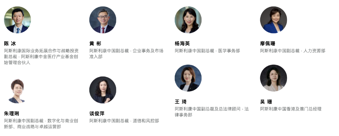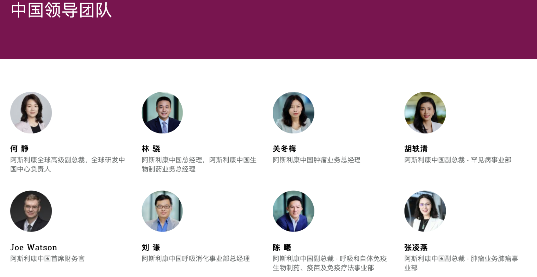 目前阿斯利康官网中国管理团队的成员包括——
