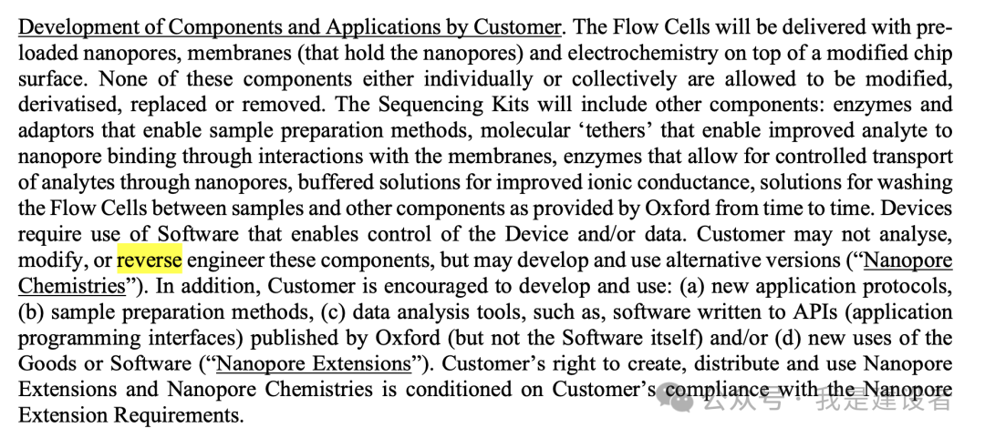 虽然ONT在美国撤回了单方面的传票申请,但还是在英国提起了对华大几家关联公司对诉讼。 ONT指控华大几家公司“违反合同、滥用机密信息和侵犯商业机密”,“非法使用”其技术开发竞争产品CycloneSeq测序仪以及其相关的流动槽和耗材。 ONT声称,它只是在“各种协议规定的限制和约束下”授予华大使用其技术的权利,其中包括限制在竞争产品的开发中使用ONT的技术;称华大及其附属公司“误导”了它,并“多次向其明确保证”,称他们“无意生产竞争性的纳米孔测序技术”。 在提起诉讼时,ONT请求法院颁发禁令,禁止华大及其附属公司滥用机密信息和侵犯商业秘密,禁止其销售、许可、使用或允许使用 CycloneSeq 或任何其他体现实质上相同测序技术的测序仪。 从这些报道来看,诉讼本身更多针对的是用户条款协议中包含的保密及非竞争等方面的约定,似乎并没有提及任何可能的专利纠纷。 针对双方一致同意并已经签订生效的协议条款和可能的违规发起诉讼,在正常的商业秩序中并不罕见。自然地,我们也不需要就此去推演任何可能的结局。 这再次敲响了警钟,在签订任何用户协议或者销售合同的时候,一定一定要仔细阅读相应的条款内容,了解清楚具体的约束条件和相应的限制。 ...流动池将预装纳米孔、膜(用于固定纳米孔)和电化学成分,这些成分位于经过修改的芯片表面之上。这些组件,无论是单独还是集体,都不允许被修改、衍生、替换或移除。测序试剂盒将包括其他组件:用于实现样品制备方法的酶和接头、通过与膜的相互作用实现分析物与纳米孔结合的分子“tether”、允许分析物通过纳米孔进行受控运输的酶、用于改善离子电导率的缓冲溶液、用于在样品之间清洗流动池的溶液以及 Oxford 不时提供的其他组件。设备需要使用能够控制设备和/或数据的软件。客户不得分析、修改或逆向工程这些组件,但可以开发和使用替代版本(“纳米孔化学品”)... ...不得 (a) 由任何当前或潜在竞争对手或其关联方使用;(b) 代表或为竞争对手的利益使用;(c) 用于开发与 Oxford Group 的产品或服务竞争或可能竞争的任何其他产品或服务(除非适用法律明确禁止此类限制);或者 (d) 为了设计或重新设计用于商业用途的产品,以便更好地与货物或软件竞争,或用于其他竞争目的... 以上只代表个人观点,不站任何立场。 |