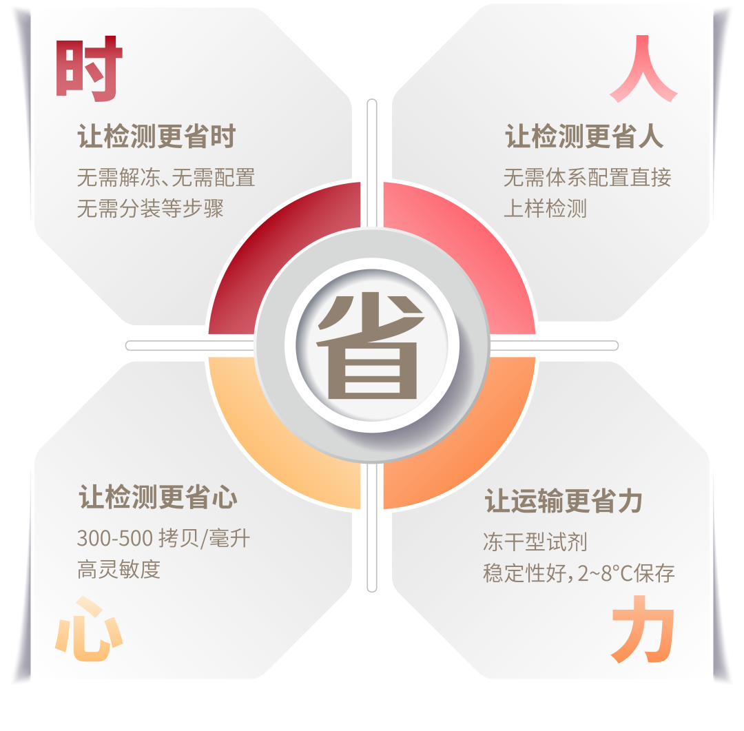 灵敏准确:检测限达300-500 拷贝/毫升,有效防止漏检;