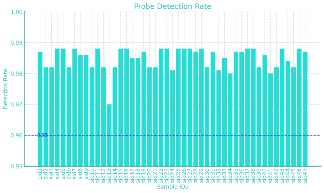 为了验证Bloomics®采血系统在实际应用中的可靠性,微基因借助Bloomics®一次性末梢采血器及专用采集容器采集血样,针对DNA甲基化检测,统计了47位志愿者的各项指标数值情况。结果表明,Bloomics®采集的末梢血样本用于甲基化分析的探针检出率、beta值重复性以及生物学年龄预测等方面具有相当的可靠性,为更高质量的健康管理提供了新的工具利器。