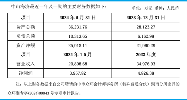 II.中山海济生物 公司简介:中山未名海济生物有限公司,成立于2004年,是一家拥有自主知识产权的基因工程生物制药企业。 主营业务:研发、生产、销售基因重组产品(注射用重组人生长激素,rhGh)以及研究生物制品。 主营产品:注射用人生长激素/注射用重组人生长激素; 核心技术:国家一类新药“基因重组人血清白蛋白”发明专利:国家二类新药“注射用重组人生长激素”新药证书、药品GMP证书、药品生产许可证、药品生产批件、国家高新技术企业等证书。 应用场景:用于因内源性生长激素缺乏所造成的儿童生长缓慢。 财务概要 2023年营收3.4977亿元、净利4826万元;2024年前5个月,营收2.0809亿元、净利3958万元。2024年5月31日,总资产3.6232亿元、净资产2.5918亿元。