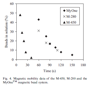 未来体外诊断的方向是简单、灵敏度、特异性(3S原则)以及最为重要的“自动化”,而纳微米磁性颗粒因其表面的特性、磁学响应等被广泛用于流式细胞仪、多因子荧光检测、单分子免疫悬浮芯片阵列、磁微粒化学发光、核酸提取、细胞分选、药物递送和蛋白纯化等。 Dynal建立在彻底改变了生物材料分离的重大突破上。1976年,挪威人John Ugelstad教授首先成功生产了一种大小均一的聚苯乙烯微球——而在此之前,只有美国航天航空局的专家们在无重力的情况下才实现过。之后,另一项惊人的成就随之而来,即生产大小均一的磁性微球。今天我们先介绍一下磁珠的一些基本性能。 磁性微球被磁场分离后,磁场撤去,磁性微球恢复至单分散状态,而不聚集,这种特性被称为磁珠的超顺磁性。超顺磁性(Superparamagnetism)是指颗粒小于临界尺寸时具有单畴结构的铁磁物质,在温度低于居里温度且高于转变温度(Block Temperature)时 表现为顺磁性特点 当磁场撤去,未能恢复原始的单分散的状态,而出现明显的聚集,则不能被称为超顺磁性。