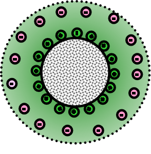 胶体:粒径在1nm~10μm之间的分散质粒子与相应的分散相(连续相)组成的分散体系 DLVO理论:(Derjaguin & Landau, 1941 Verwey & Overbeek, 1942) (1) Van der Walls 引力(远程力) (2) 静电斥力(近程力) 两者总结果,形成能垒,是溶胶的稳定点 Double Layer 双电层 ● 双电层的厚度决定微球之间的静电排斥的强弱 ● 微球双电层的厚度随盐浓度的升高而显著降低 ● 粒径越小的磁珠对盐浓度更为敏感