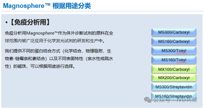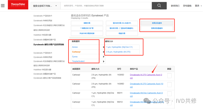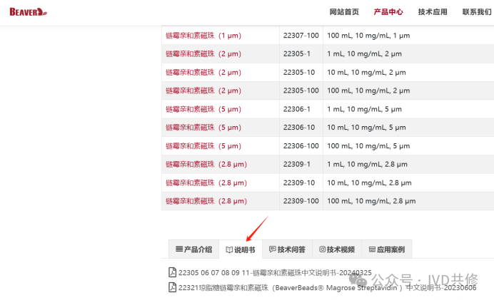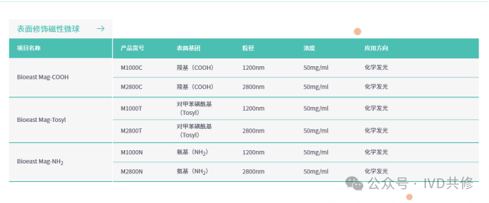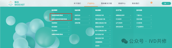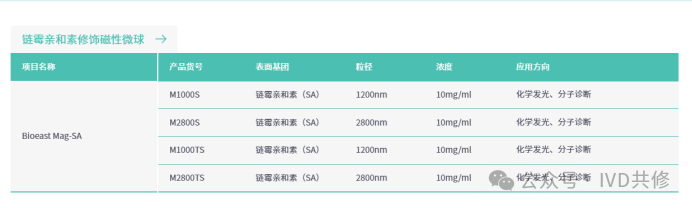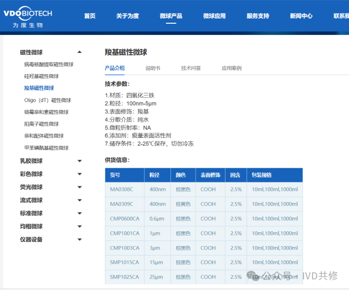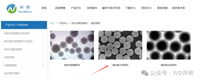 进入网站后,选择产品中心体外诊断用微球磁性微球,则会出现如下界面。