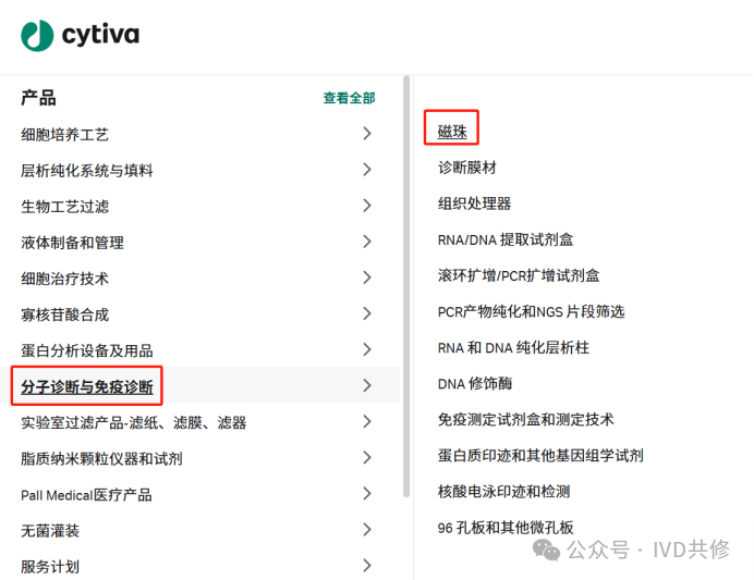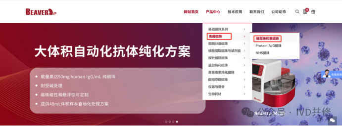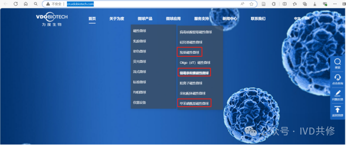 进入网站后选择产品分子诊断与免疫诊断磁珠