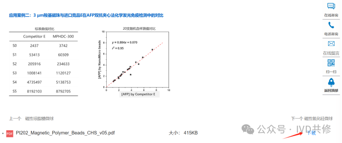 再选择磁性聚合物微球,则可以看到磁性微球的参数介绍,还可以下载PDF版本。