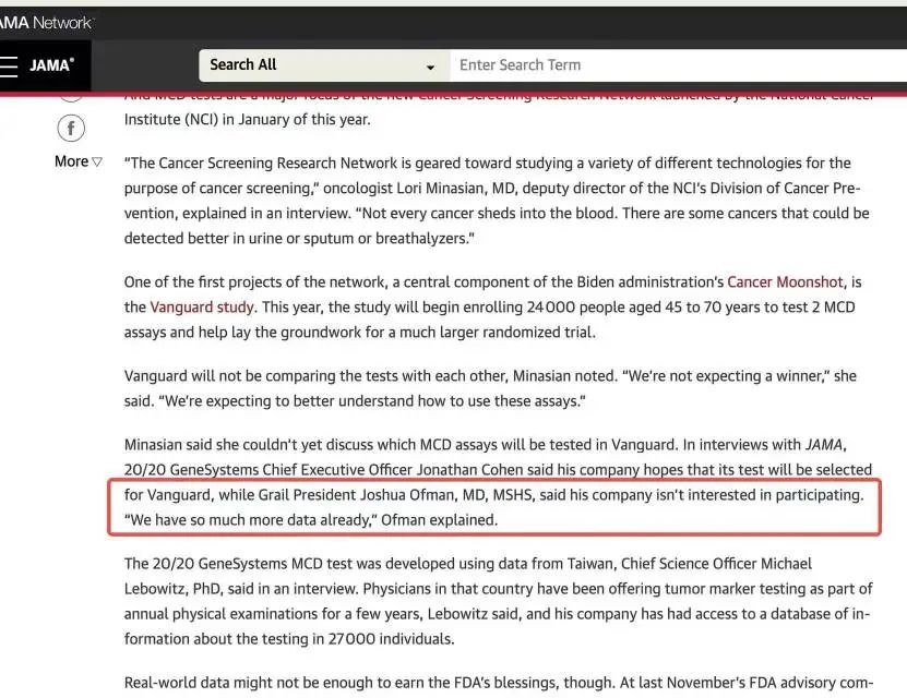 Grail很“老实”,但它的友商们盯上了老实人 今年的JPM,主旋律是:混战。 各个巨头仗着自己雄厚的现金储备(和技术积累),纷纷在立足主业的基础上把触手伸向了友商的基本盘。 “俗称:吃着碗里的,看着锅里的” 昨天我们关注了肠癌筛查这个赛道:肠癌筛查的玩家们,都有一个“百万梦” 而随着Natera和Grail的悉数亮相,我们“惊喜”的发现,曾经一度“冷淡”的多癌筛查赛道,又开始火热了起来。 今天,我们聊聊多癌早筛,一个巨头们开始“惦记”的市场