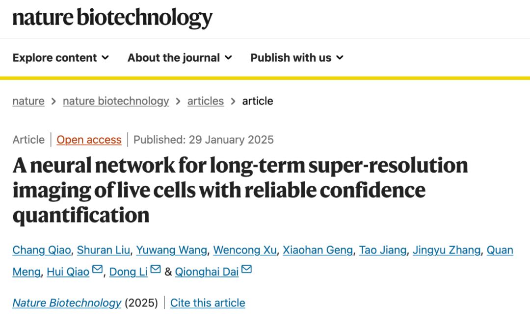 Qiao, C., Liu, S., Wang, Y. et al. A neural network for long-term super-resolution imaging of live cells with reliable confidence quantification. Nat Biotechnol (2025). https://doi.org/10.1038/s41587-025-02553-8