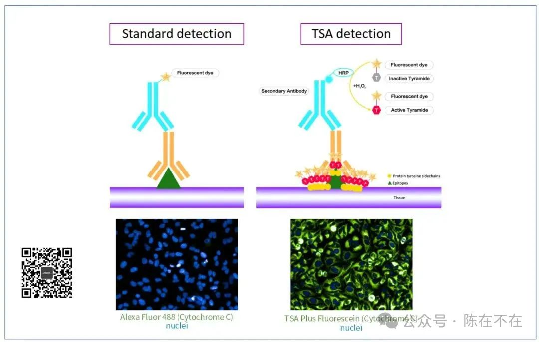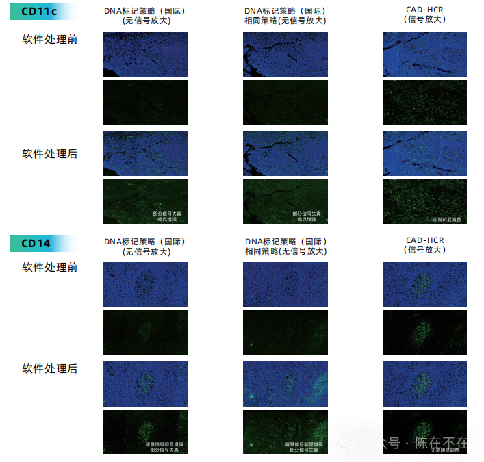 Foresight 先见一轮最多可以染9个靶标。新高度! HCR是具有一个尾巴的tHCR,因此产物可以通过引入洗脱链,发生支点介导的链置换反应,将产物去组装。整个过程中的孵育与清洗条件都很温和,组织不会脱落,因此,理论上可以实现无限轮次的循环。反复洗脱不影响后续的成像, Akoya是一轮三个靶标。 TSA (Tyramide dignal amplification,酪氨酸信号放大) :一次一种荧光染料标记一种蛋白,在一张切片上最多成像靶标少于10。 图片来自公众号【循因缉药】 为什么采用HCR技术可以放大?放大带来的好处是什么? HCR是杂交链式反应,在目标分子存在下,引发DNA发夹交替开环自组装,形成包含大量重复单元的切口双链DNA结构 计算机辅助设计CAD-HCR,最多可以做到多少HCR引物? 通过CAD设计了HCR序列库,最大的通量在103套,目前已经验证了30套高度正交的序列。 目前验证过的抗体数量和种类? 目前,验证抗体超过100种,能够在高特异性、高灵敏的多重分析中实现平衡。 自标记抗体要求:抗体浓度≥1 mg/mL,BSA and azide Free,单次偶联不低于40μg。 目前先见的业务形态?