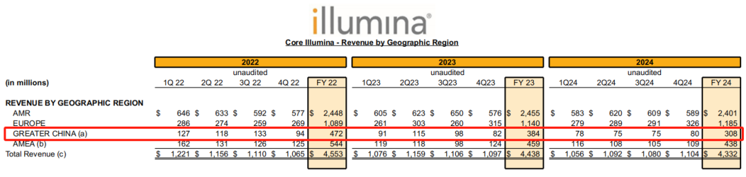 因美纳最新2024年财报显示,营收43.72亿美元(-2.9%)。核心测序部门全年净收入8.94亿美元。但由于计入了超过18.8亿美元的减值费用以及与去年剥离Grail公司相关的其他费用,公司全年合并净亏损达12.2亿美元。 中国作为其第二大市场,业绩已连续两年下滑:2023年-19%,2024年-20%。