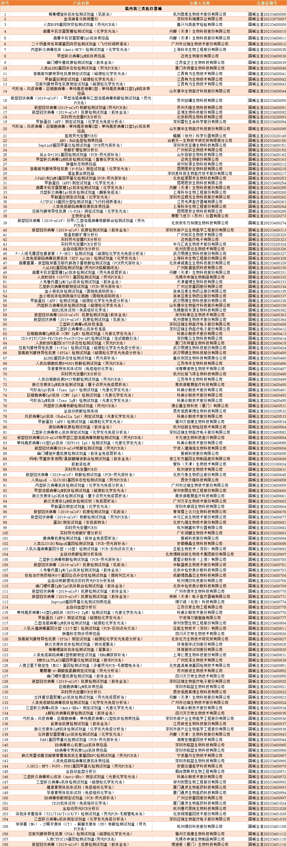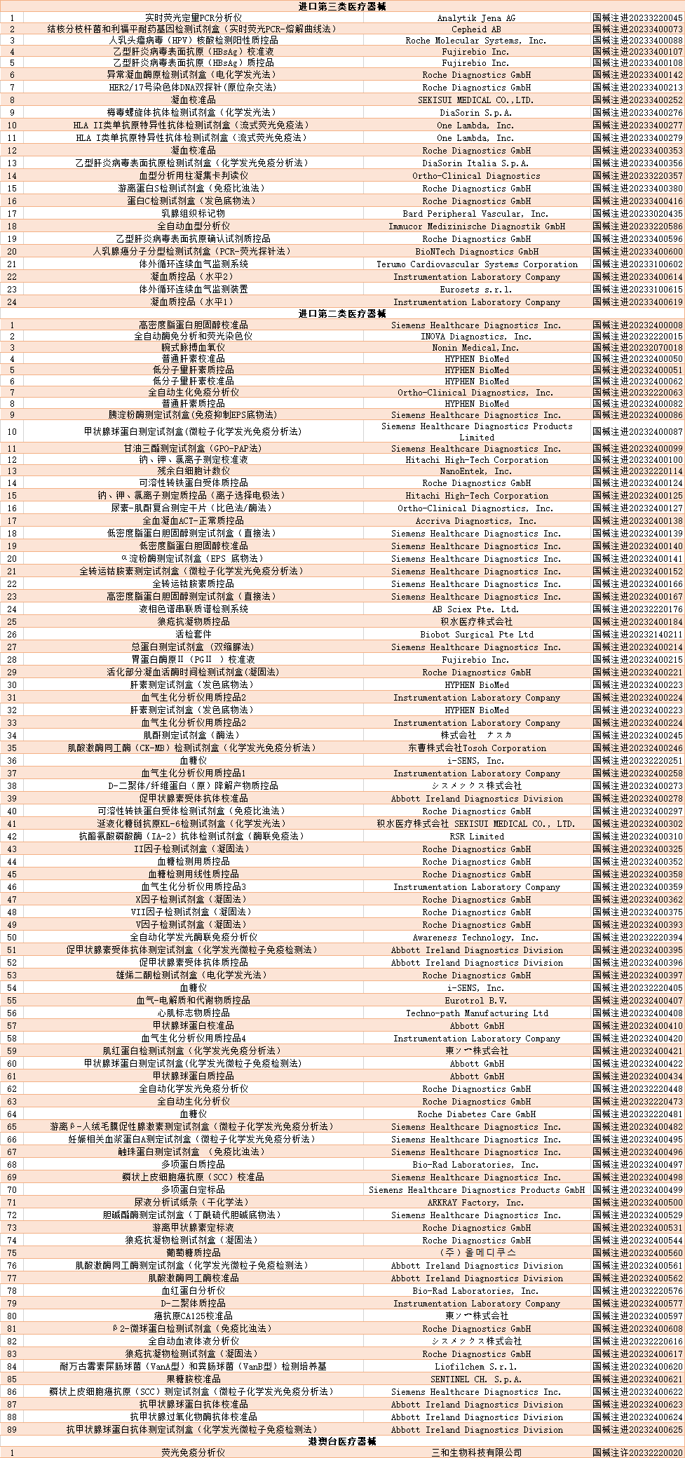 截至2023年12月,国家药品监督管理局共批准注册IVD产品431个。其中,境内第三类IVD产品317个,进口第三类IVD产品24个,进口第二类IVD产品89个,港澳台IVD产品1个。