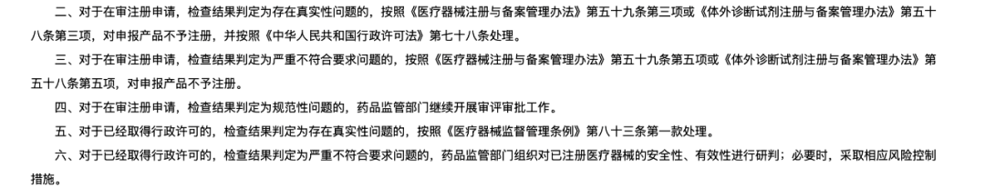 PS:这篇仅代表个人观点。如果我俩理解不一样,那么你是对的。欢迎留言区探讨。 “真实性问题、严重不符合要求问题、规范性问题、符合要求”对于“真实性问题”和“严重不符合要求问题”,都明确了处罚措施:“10年内禁止申请”这一尘封在《医疗器械监督管理条例》第八十三条里的处罚措施,被首次明确的摆上了台面。因为之前不管是《食品药品监管总局关于开展医疗器械临床试验监督抽查工作的通告》(2016年第98号),还是《国家药监局综合司关于印发医疗器械临床试验检查要点及判定原则的通知》(药监综械注〔2018〕45号),都并未明确把这一条写进处罚措施里。而至今有记录的最重处罚结果也只是“不予注册+1年内不得再次申请该行政许可”。此次发布的公告曾经在2023年11月和2024年6月两次公开征求意见。有两个征求意见稿中的“真实性问题”被降级为“严重不符合要求问题”1. 修改受试者信息、样本及试验医疗器械信息、主要试验过程记录、研究数据及检测数据等临床试验数据,严重影响安全性有效性评价;2. 入选排除标准、主要评价指标、重要的安全性指标等关键临床试验活动、临床试验数据或者样本不能溯源在当前合规趋严的环境下,如果一家企业十年内无法进行产品注册,这就是“死刑”。——以“少数极刑”换取“多数老实”,这中间的杠杆越大,说明执行效果越好。这可能也是那两条被“降级”为“严重不符合要求问题”的考量因素。而随着范围被缩窄、目标可锁定,处罚的落地执行就变得可预期了起来。谁会成为第一家“10年内不受理相关责任人以及单位提出的医疗器械许可申请”的IVD企业?从历史来看,药监局会给予企业“主动认错”的时间窗口。2016年6月8日,药监局发布《食品药品监管总局关于开展医疗器械临床试验监督抽查工作的通告》(2016年第98号)。6月8日-8月25日,51家企业主动撤回了101个医疗器械注册申请项目;4个项目被“不予注册”且“不予注册之日起一年内不予再次受理”。于是在8月26日-10月19日,又有44家企业撤回了130个医疗器械注册申请项目。当然,上一次的“紧急避险”只需撤回注册申请,而这一次涉及到“撤回注册证”,可能决策起来就有点肉痛了。不管是12315或者在线信访这样的NMPA公开渠道,还是内部联系注册管理司/审核查验中心这样的非公开渠道——毕竟,“造假拿证”算是行业公敌了,而友商也乐于见到这样的企业被十年禁入。