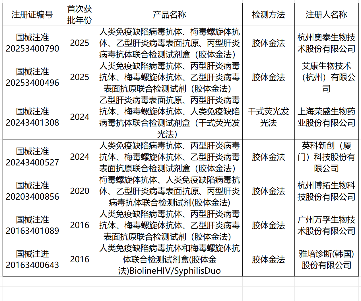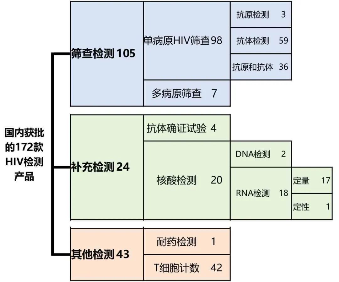 HIV 感染的早期诊断一直是 HIV 控制中的关键点。本期结合国内最新HIV诊断专家共识,系统盘点国内已获批的HIV检测产品。 了解HIV 艾滋病,即获得性免疫缺陷综合征(AIDS),其病原体为人类免疫缺陷病毒(HIV)。 HIV在病毒分类学上属于反转录病毒科慢病毒属中的人类慢病毒组,为直径100~120nm的球形颗粒,由核心和包膜两部分组成。HIV分为HIV-1型和HIV-2型,HIV-1为国内主要流行株。 HIV主要侵犯人体的免疫系统,包括CD4 T淋巴细胞、单核巨噬细胞和树突细胞等。主要表现为CD4 T淋巴细胞数量不断减少,从而削弱人体对机会性感染(如结核病、真菌感染)、严重细菌感染及某些癌症的免疫力。 据联合国艾滋病规划署最新报告,截至2023年底,全球现存HIV感染或AIDS患者3990万例,2023年新发感染者130万例,死亡人数约63万例,约3070万人正在接受抗逆转录病毒治疗。 我国HIV感染情况亦不容乐观。截至2023年底,我国报告存活的HIV感染或AIDS患者共有129万名,2023年新报告病例11.05万例。其中性传播比例达98.5%,死亡人数约4.2万例。 为更好控制HIV感染,联合国在“到2030年终结艾滋病流行的政治宣言”中承诺,2030年前实现“三个95%”目标,即95%的HIV感染者能得到确诊,95%的确诊者能获得抗病毒治疗(ART),以及95%的接受治疗者体内病毒得到抑制。 关于HIV诊断 1、为什么HIV早期诊断很重要 (1)及时开展HIV筛查可有效降低HIV传播风险。 我国将 HIV急性期定义为感染后的 6个月内。以往数据显示,约50%的新发经性途径感染HIV者都是与急性期感染者发生性行为暴露所致。 并且,HIV急性感染时出现的症状缺乏特异性,大多数患者的症状轻微,持续1~3周后可自行缓解。如果无法及时获取患者流行病学史,可能被误认为是流感等其他病毒感染性疾病。 (2)早期诊断利于疾病控制 HIV感染并不等同于患上艾滋病。从感染HIV到发病一般有以下几个阶段:急性感染期、潜伏期、艾滋病前期、典型艾滋病期。 当免疫系统严重受损,人体出现各种机会性感染和肿瘤时,疾病才进入艾滋病期。 感染急性期病毒大量扩增,这一阶段正是控制 HIV 病毒复制、最大限度保护免疫功能及抑制全身免疫激活的关键时期。现有治疗方法虽不能彻底清除体内病毒,但是,感染者若能够早诊断、早治疗,能够稳定病情或减缓疾病进展。 2、急性期HIV感染检测方法 参考《人类免疫缺陷病毒感染检测与诊断管理的专家共识》2025版,HIV感染检测主要分成筛查检测技术、补充检测技术及其他实验室检测方法(图1)。 图1 HIV感染检测方法 ①HIV 筛查试验是用于初步检测个体是否感染 HIV 的第一线检测方法。主要包括ELISA、化学发光、免疫荧光及快速检测等免疫学技术策略,一般具备较高的灵敏度。 ②HIV 补充试验用于筛查结果的确认,包括基于免疫印迹或重组免疫印迹的抗体确证试验和HIV核酸检测。 ③其他实验室检测方法包括耐药检测、CD4 T细胞计数等检测方法。用于患者免疫状态监测、用药指导及科学研究等领域。 受HIV急性期感染生物学过程影响,不同方法能够检测到HIV感染的起始时间有一定差异(图2) 图2 不同方法检测到HIV感染的起始时间。(h, 小时;d, 天) 国内HIV检测产品分析 1、整体情况概览 检索DataMed数据库,国内获批的HIV检测产品(包含T细胞计数相关产品)共约172款,其中筛查试验检测产品105款,补充试验检测产品24款,其他检测产品43款。各类检测产品的构成情况如图3所示。 图3 国内获批的172款HIV检测产品构成情况。数字代表产品数量 从整体产品构成上可见以下特点: ①HIV筛查试验检测产品数量最多。相比之下,补充试验检测产品数量稍少,尤其是抗体确证试验产品。 ②其他检测产品中,仅有一款HIV耐药检测产品获批。(表1) 表1 NMPA批准的HIV耐药检测产品信息 3、HIV筛查检测产品分析 ①HIV联合乙肝、丙肝、梅毒的多病原快速筛查产品 如表12所示,共7款HIV联合乙肝、丙肝、梅毒的多病原快速筛查产品。其中,截至6月,2025年已有2款相关产品获批。 表2 国内获批的HIV联合检测产品信息 ② HIV自测产品仍不足 便捷、快速的自我检测和快速检测方法利于保护患者隐私、提高HIV检测覆盖率。根据105款HIV筛查产品的检测方法及预期用途分析,约有48款HIV快速检测产品(附录一) 图4 HIV筛查产品构成情况 从样本类型看,血液相关样本仍是HIV筛查产品的核心样本类型,在HIV自测场景下应用受限。 此外,有6款以口腔分泌物/粘膜渗出液为检测样本(表3),3款以尿液为检测样本的快速检测产品。 图5 HIV筛查产品检测样本类型构成情况 表3 以口腔分泌物/粘膜渗出液为检测样本的试剂信息 关于自测产品,根据产品预期用途,仅万泰生物2款尿液检测产品明确标出可用于消费者自测。(表4) 表4 在适用范围中宣称可用于消费者自测的产品 总结 总之,根据以上分析,有以下初步结论: 1、国内获批的HIV检测产品基本覆盖了HIV检测中的筛查和补充检测场景。 2、基于血液进行HIV筛查的产品市场呈现饱和态势。 3、基于口腔粘膜渗出液、尿液等便于取样的HIV自测产品仍有很大的市场增长空间。 4、仅有1款HIV耐药检测分子产品获批,开发更多耐药检测产品利于HIV患者的用药指导。 参考文献: [1]中国医疗保健国际交流促进会基层检验技术标准化分会 人类免疫缺陷病毒感染检测与诊断管理的专家共识 [2]中华医学会感染病学分会艾滋病学组 中国疾病预防控制中心 中国艾滋病诊疗指南