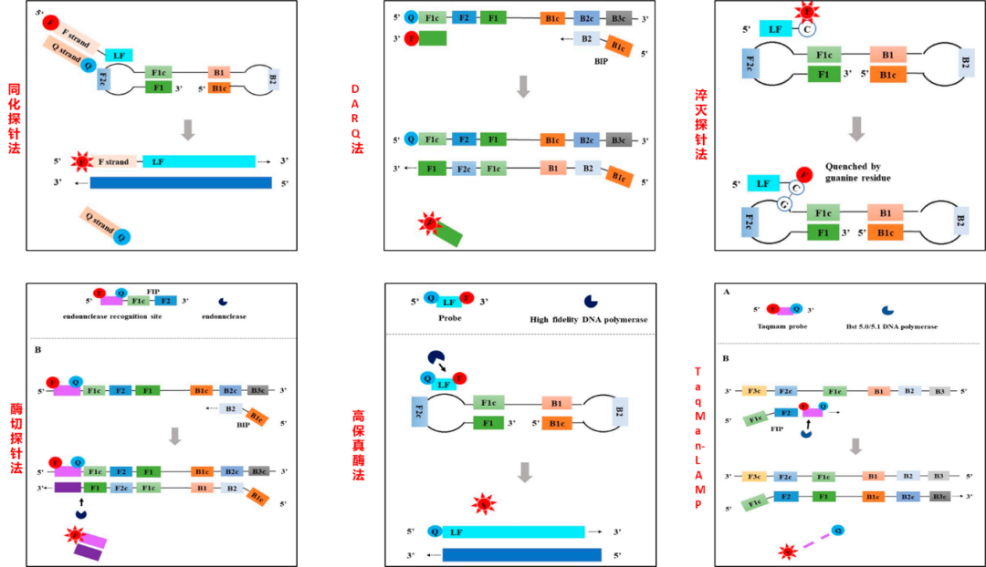 一、传统LAMP的痛点 环介导等温扩增(LAMP)技术因操作简单、无需昂贵设备,成为现场检测的明星技术。但它有两大短板: 为突破局限,科学家开发了探针技术,实现“精准锁定目标+实时监测”: 二、六大探针法:精准狙击病原体