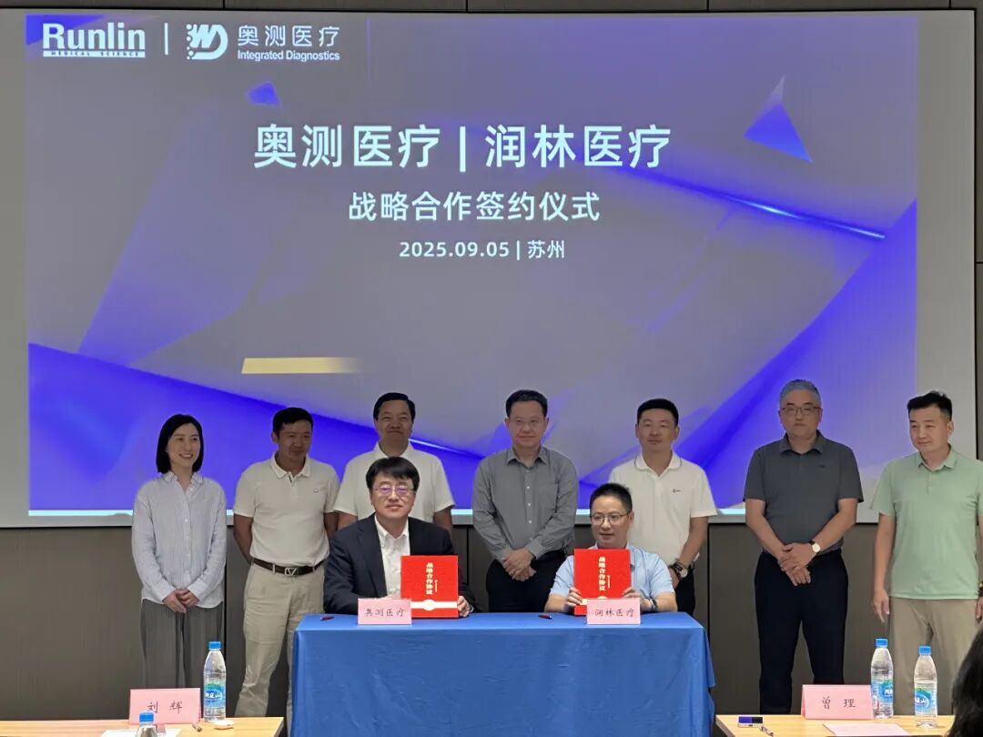 2025年9月5日,奥测医疗与润林医疗于苏州药明泽康签署病理领域战略合作协议。此次合作双方将充分发挥各自优势和资源,持续聚焦病理创新靶点的开发,深度融合渠道资源,共同助推中国肿瘤病理精准诊断的加速发展!奥测医疗总经理王强和润林医疗总经理曾理代表双方签署战略合作协议,润达医疗总经理刘辉及多位子公司领导出席并见证本次活动。 基于双方对病理事业发展的共识,秉承“优势互补、资源共享、共赢发展”的理念,携手开启战略合作伙伴关系——未来将在病理产品研发、临床诊断服务、区域精准中心等领域深度协作,共同破解行业发展痛点,为提升区域乃至全国病理诊疗水平注入新动力。 奥测医疗CEO 王强博士表示: 奥测自成立以来一直专注于免疫组化平台,目前已经实现从临床检测到创新靶点伴随诊断试剂的开发,以及全套免疫组化产品和整体解决方案的商业化布局。非常高兴奥测医疗可以和润林医疗展开深度合作。奥测将继续以创新为支点,在创新靶点的开发、设备的迭代等方面不断加大研发投入,提供最佳整体解决方案。 润林医疗总经理曾理表示: 在现代医疗体系中,病理诊断作为疾病确诊的“金标准”,其重要性不言而喻。润林医疗作为润达医疗的全资子公司,以病理体外诊断产品的流通与服务为核心业务,构建起一套完整的供应链体系,涵盖试剂耗材供应、设备维护支持、实验室质量管理及人才培养等多个维度。非常高兴润林医疗能与奥测医疗展开深度合作,并希望依托双方的优势资源和技术积累,迅速发展成为深耕病理领域的领军企业。 本次签约仪式中,润达医疗总经理刘辉先生作为特邀嘉宾致辞道:当前,病理领域仍面临自动化程度相对较低、诊疗难度大等核心行业痛点。这些痛点既是行业发展需突破的挑战,更是推动技术创新的关键机遇。在此背景下,奥测医疗与润林医疗正式在病理领域达成战略合作。相信此次合作将充分整合双方在技术、渠道与资源等方面的优势,在病理市场中释放更大价值、构筑更强竞争壁垒。 同时,青岛益信、鑫海润邦、苏州润达等多位子公司领导也出席并见证了双方的合作。他们表示: 奥测在病理领域的创新能力与润林的渠道优势将形成聚合效应。通过此次合作的签署,将为病理精准诊断构筑新的驱动引擎,期待双方依托优势资源与技术积累,能够进一步打开病理市场的新局面。 奥测医疗是一个专注于临床诊断的创新性诊断赋能平台公司。公司总部位于上海,在苏州设有ISO 13485生产质量管理体系认证的全球产业化基地,在美国罗彻斯特市设有创新项目中心。 目前在病理、质谱、分子等多个技术平台已开发200+体外诊断试剂获得药监局批准,其中临床免疫组化产品线以国产原研伴随诊断PD- L1(克隆号WD160)试剂盒为核心产品,同时具有EBER及MMR等优势产品,利用自研二抗突破进口瓶颈,提供国内领先的免疫组化及伴随诊断整体解决方案。 奥测秉承着“让天下没有难诊的病“的理念,将持续通过算法整合升级,构建多平台、多组学及临床大数据驱动的整合诊断赋能平台,聚焦重点疾病领域,布局丰富的研发管线,通过WINS不断驱动整合诊断服务和产品升级,同时加速诊疗创新者从研发到应用的技术转化,创造共赢共享的产业新生态。 上海润林医疗科技有限公司成立于2015年11月,系上海润达医疗科技股份有限公司(主板上市企业——股票代码:603108)下属专注于病理领域的全资子公司。润林医疗的业务覆盖华东、华南、西部及东北地区,以病理体外诊断产品的流通与服务业务为主,是国内最专业的病理检验中心服务商之一。 随着医疗技术的进步和患者需求的多样化,润林医疗主动求变,不断创新服务模式。例如,与国内最知名医学高校展开战略合作,提供线上线下相结合的专业技术人才培养及培训,帮助病理医师和医技人员提升专业技能水平;与国内知名远程诊断病理网络平台合作,协助医院展开病理远程诊断服务;通过数字化平台实现订单管理、库存监控等功能的智能化升级;利用大数据分析预测市场动态,提前做好备货准备;这些举措不仅提升了运营效率,也为客户带来了更多增值体验。