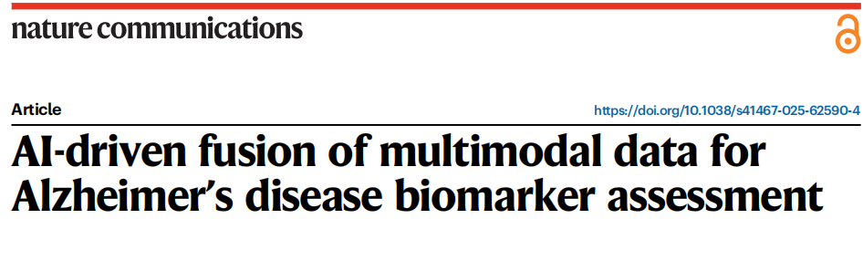 近日,杂志Nature communications上发表了一篇题为“AI-driven fusion of multimodal data for Alzheimer’s disease biomarker assessment”的文章。作者提出了一种多模态计算框架,整合来自7个独立队列的12,185名参与者数据,利用更易获取的神经学评估指标预测个体PET特征,旨在开发一种AD筛查工具,为抗淀粉样蛋白疗法和靶向Aβ/τ的临床试验提供经济高效的预筛选方案。该框架在分类Aβ和τ状态时分别达到0.79和0.84的AUROC值,且预测结果与多种生物标志物谱以及病理一致。