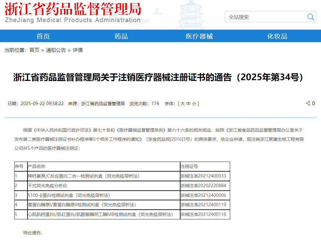 啊!成立十年的老牌IVD企业一口气注销5个产品的医疗器械注册证! 小编从浙江省药监局网站注意到,9月22日,浙江聚康生物工程有限公司注销5个荧光产品医疗器械注册证。 国家药监局官网显示,浙江聚康生物工程有限公司共有7款登记在册的注册证,本次注销完成后,将仅剩掌式无线彩色多普勒超声诊断系统及无线掌上彩超成像诊断系统两款产品。 企查查信息显示,浙江聚康生物工程有限公司成立于2015年,注册资本2000万元。公司业务广泛,涵盖第一、二、三类医疗器械的生产与销售,还涉及技术服务、开发、咨询、交流、转让、推广,人体基因诊断与治疗技术开发,人体干细胞技术开发和应用,工程和技术研究和试验发展,医疗设备租赁等。 来源:浙江药监局、国家药监局、企查查 整理:体外诊断网 |