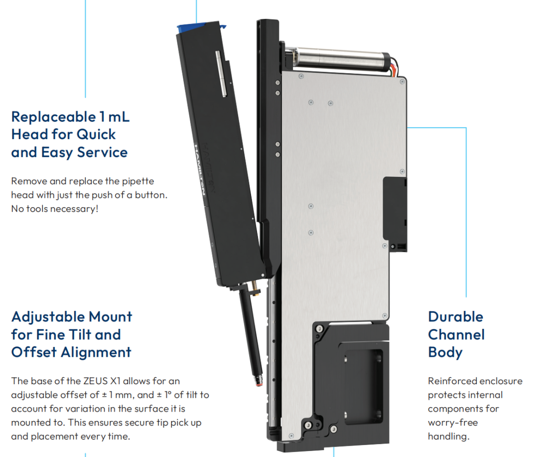 功能:是自动化移液工作站的核心功能单元。通常由单通道或多通道(8, 96通道)的精密活塞泵/注射器系统构成,负责液体的精确吸取、分配、转移和混合(吹打)。可配备不同规格的吸头,处理纳升至毫升级的液体。