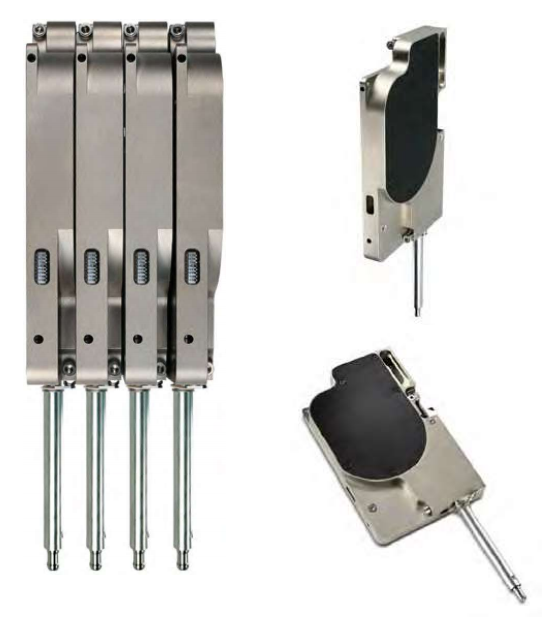 3)Z轴的数量同样不固定,跟移液模块相搭配,单通道移液模块和96通道移液模块只有一个Z轴,独立四通道移液模块就有四个Z轴,独立八通道移液模块就有八个Z轴。主要的传动形式有:同步带传动,齿轮齿条传动,丝杆传动。
