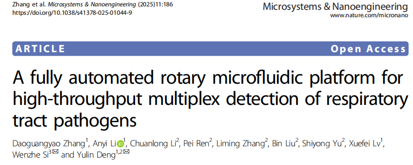 呼吸道感染(RTIs)是全球发病率和死亡率的主要诱因之一。季节性流感、肺炎支原体(MP)、SARS-CoV-2等病原体常同时流行,其临床症状重叠且难以区分,早期精准诊断对指导临床治疗和公共卫生应对至关重要。因此,迫切需要高通量、多病原体检测,通过快速识别大量患者群体中的致病病原体,减轻医院和实验室的压力。目前主流检测技术如RT-qPCR虽具高灵敏度和特异性,但依赖实验室设施。等温核酸扩增技术如环介导等温扩增(LAMP)无需热循环约束且保留高分析灵敏度,但其应用受限于引物设计复杂性及多重检测中交叉引物干扰等问题。微流控技术将样品制备、扩增与检测集成于微型自动化平台,为呼吸道病原体诊断提供了新思路。然而,现有微流控设备仍存在几个局限:(1)通量受限;(2)手动驱动或复杂离心结构;(3)系统集成度低,易导至污染。 近日,杂志Microsystems & Nanoengineering上发表了一篇题为“A fully automated rotary microfluidic platform for high-throughput multiplex detection of respiratory tract pathogens”的文章。作者开发了一种全自动旋转微流控平台(FA-RMP),用于高通量多重呼吸道病原体检测。FA-RMP能够在30分钟内并行处理16个独立的反应,支持同时检测多达4个不同的临床样品。该平台可在30分钟内检测出50拷贝/μL的肺炎支原体DNA,同时支持3种病原体的检测,为临床呼吸道病原体的多重诊断提供了一种很有前景的工具。 图片来源:Microsystems & Nanoengineering 主要内容 FA-RMP整合微流控芯片、光学检测模块及四通道温控系统,整体尺寸为340mm × 255mm × 230mm,重量小于9kg,适用于POCT场景。FA-RMP将温度控制和荧光信号检测集成到全自动工作流程中,能够同时处理多达四个单独的检测通道,从而实现高通量诊断。微流控卡盒采用旋转驱动结构,集成样本裂解、试剂混合与液体分配功能。通过电机驱动转子旋转,控制液体在裂解室、样本加载室与混合室间定向流动,最终将裂解后样本导入预装冻干LAMP试剂的反应室。FA-RMP可在~ 30min内自动完成核酸释放、等温扩增、实时荧光检测等检测过程。 全自动旋转微流控平台(FA-RMP)概述 图片来源:Microsystems & Nanoengineering 作者优化了LAMP反应内引物(FIP/BIP)、外引物(F3/B3)及环状引物浓度,最终确定了内引物20μM(图a)、外引物5μM(图b)、环状引物10μM(图c)。优化Mg2+浓度为4 mM,以平衡扩增效率与非特异性信号抑制(图d)。 LAMP反应体系优化 图片来源:Microsystems & Nanoengineering 利用MP标准培养物,作者研究了FA-RMP的敏感性和特异性。结果显示,FA-RMP对MP-DNA的检测限低至50 copies/μL(图a),在5000–50 copies/μL范围内,阈值时间(Tp)与模板浓度对数呈线性相关(R² = 0.9528),说明FA-RMP具有很好的定量能力(图b)。在8种非目标呼吸道病原体(流感A/B、呼吸道合胞病毒等)检测中均无交叉反应,证明其具有高特异性(图c)。 FA-RMP敏感性、特异性研究 图片来源:Microsystems & Nanoengineering 通过甲型流感、乙型流感和肺炎支原体(MP)的临床样本,作者评估了该系统同时检测多种呼吸道病原体的能力。临床样品经核酸释放试剂预处理后加入微流控卡盒。结果显示,已知的甲型流感、乙型流感和MP样本都在适当的腔室中特异性检测,没有交叉信号(如下图)。这证明了该分析对临床标本的适用性及其在芯片上多重目标的能力。 病原体的多重检测 图片来源:Microsystems & Nanoengineering 作者开发了一种全自动旋转微流控平台(FA-RMP),用于高通量多重呼吸道病原体检测。FA-RMP通过微流控技术、冻干试剂与自动化系统的融合,实现了呼吸道病原体的高通量、快速以及多重检测。FA-RMP具有30分钟内完成4样本并行检测的能力,可达到50 copies/μL的检测限与100%特异性,适用于资源有限环境中多重呼吸道病原体的同步筛查需求。 但尽管FA-RMP在鼻咽拭子检测中表现优异,但对高粘度样本(如痰液)的适用性尚未验证。未来需扩展复杂样本类型测试,并进一步增加临床样本规模及病原体覆盖范围。同时,平台实时荧光采集与模块化腔室结构为未来集成定量分析及数字LAMP提供基础。通过结合多重等温扩增方法与其他病原体引物,可进一步扩展其应用场景。 |