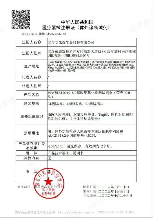 艾米森一枝独秀,新获第6款甲基化试剂盒,NMPA注册甲基化试剂盒已达44款!