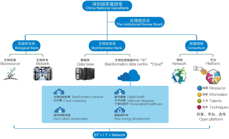 2014年12月30日,国家基因库一期工程封顶仪式在深圳举行,这标志着我国生物产业的战略性发展向前迈进了关键的一步。 国家级基因库 近年来,美国、欧盟、日本等发达国家已将保护基因资源列入本国战略计划,分别建立了国家级的基因数据库(NCBI、EMBL和DDBJ)和层次不同的生物样本资源库。而我国生命科学和生物产业虽发展迅速,但大量的生物样本和基因数据的收集,保存、分类管理以及应用尚不规范,因此,需要建立技术领先、标准规范、共享服务、安全可靠的国家级基因库。 深圳国家基因库是我国推动生物产业发展和基因技术研究的重大科技基础设施,着眼于为本国生命科学研究和生物产业发展提供基础性和公益性服务平台,储存和管理我国特有的遗传资源、生物信息和基因数据,是具有国家水平、服务国家战略需求的公益性创新科研和产业基础项目。作为中国第一个国家级基因库,截止目前已累计处理了近300万份生物样本。