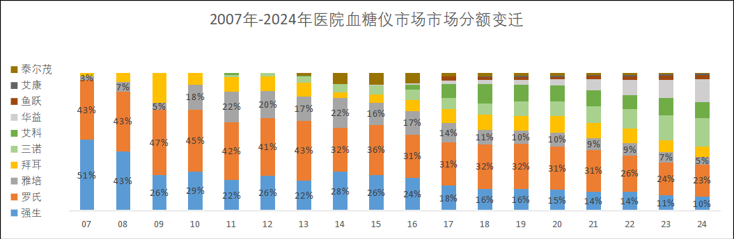 进口企业市场份额虽然持续下滑,但也不会退出。以罗氏为例,其失去医院血糖市场的份额已经持续14年,还可能继续萎缩。