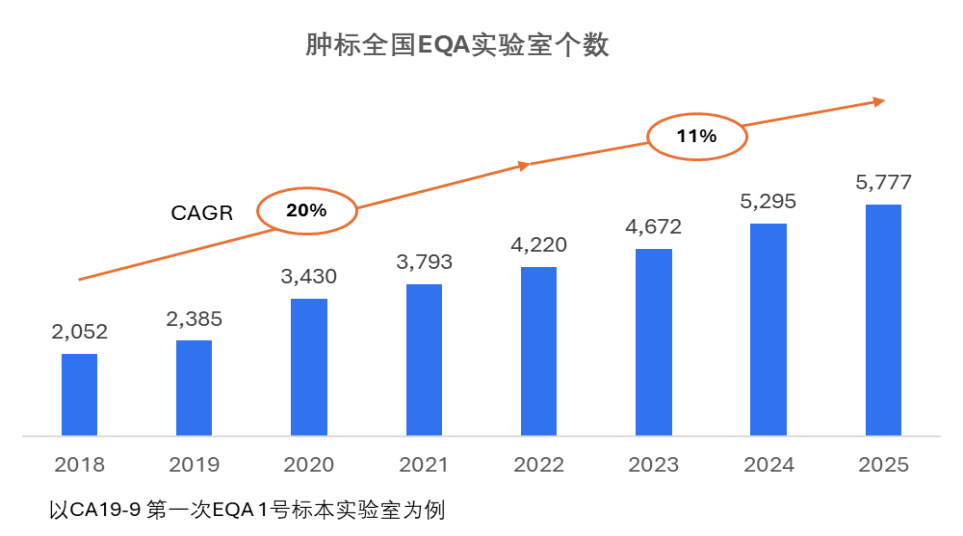 数据来源:2018-2025年全国EQA CA19-9实验室数量