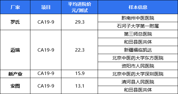 在中标价格公示文件中,可直接观察到罗氏中标的进院价格明显高于其他本土产品。