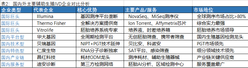 Illumina作为全球基因测序仪的领导者,其测序平台几乎是所有PGT检测的硬件基础;Thermo Fisher Scientific通过收购Life Technologies和Affymetrix,形成了从芯片到测序的完整解决方案;Vitrolife和CooperSurgical则在胚胎培养液、时差培养箱等耗材设备领域占据主导地位。在测序领域,因为因美纳的不可靠实体,是否能改变国产对此的依赖,我们拭目以待。