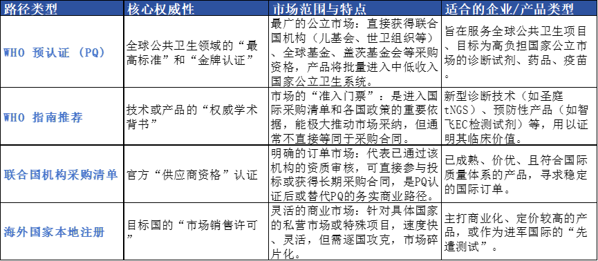 世界卫生组织的“预认证”-PQ是一个特定的、正式的资格认证程序。根据现有的公开信息来看,首个且唯一获得结核病诊断检测PQ的是美国企业赛沛的产品。中国企业的产品主要通过获得 “WHO推荐”、技术被纳入WHO评价标准或进入联合国机构采购清单等方式获得国际认可,这些都是通往PQ认证的重要里程碑,但并非正式PQ本身。