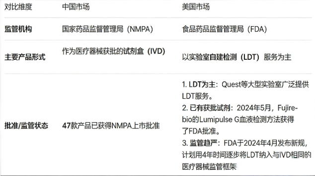 与此同时, FDA血检破局的下面是美国LDT仍在“大行其道”国内LDT发展刚突破不久,对AD来说更不是主战场,折射出了中美两地不同的监管体系。