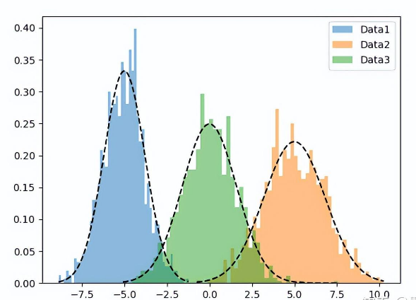 第一步(猜):先随机猜一下三个“钟形曲线”的中心和胖瘦。