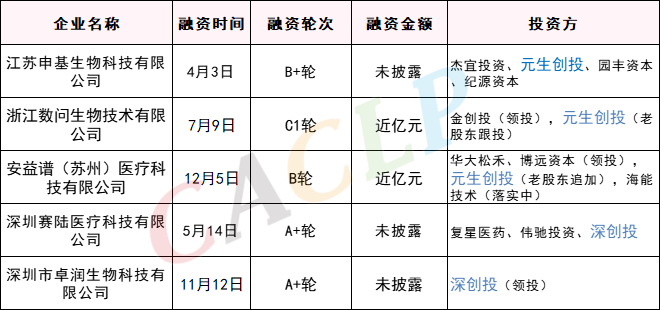 2025年度投资比较积极的是机构是元生创投,接连投了申基生物、数问生物、安益谱;深创投投了卓润医疗、赛陆医疗。