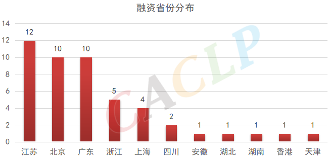 从具体数据看,江苏省以12起融资事件领跑全国,融资数量占全年总量的 1/4,年内共有 10 家本土IVD企业获得资本支持 —— 这一优势得益于江苏完善的产业扶持政策、高密度的专业化医疗科技园区,以及丰富的本土创投资源。北京、广东融资热度紧随其后,均达到10起;而浙江、上海等长三角核心区域也保持一定活跃度,其余省份融资事件合计7起。