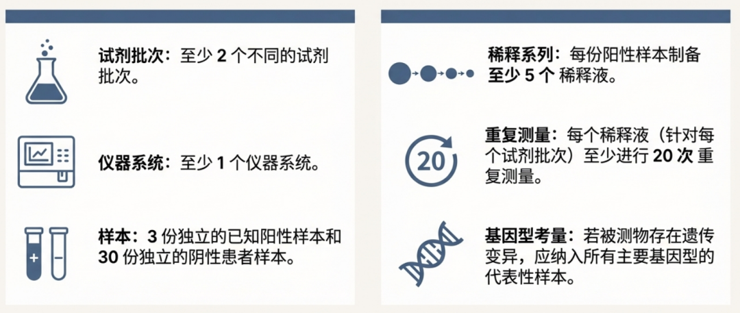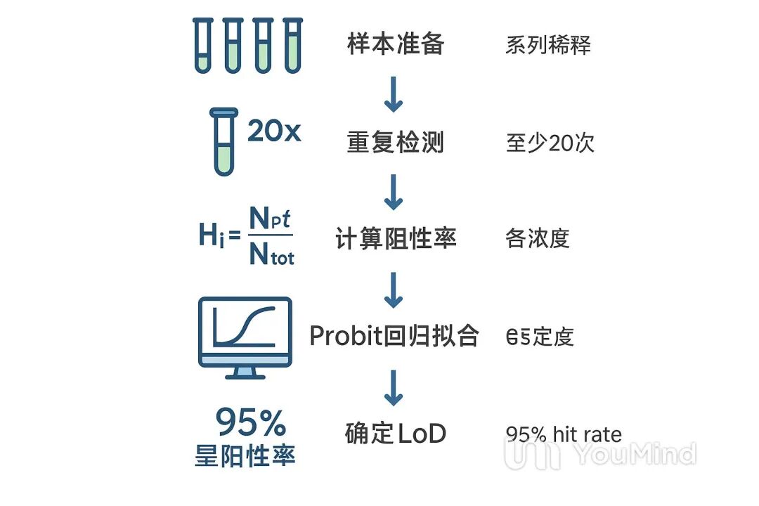 • 如果使用了多个试剂批次,需分别计算 LoD,并报告其中的最大值