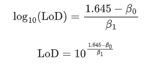1.645 = 2.78log10(LoD) - 2.53