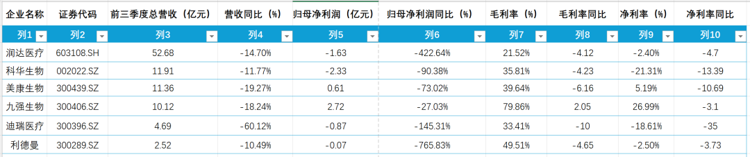 迈克生物和亚辉龙在盈利端承压更为明显,归母净利润同比降幅均超70%,而热景生物的亏损进一步扩大,前三季度归母净利润为-1.09亿元,同比下滑幅度高达168.12%。