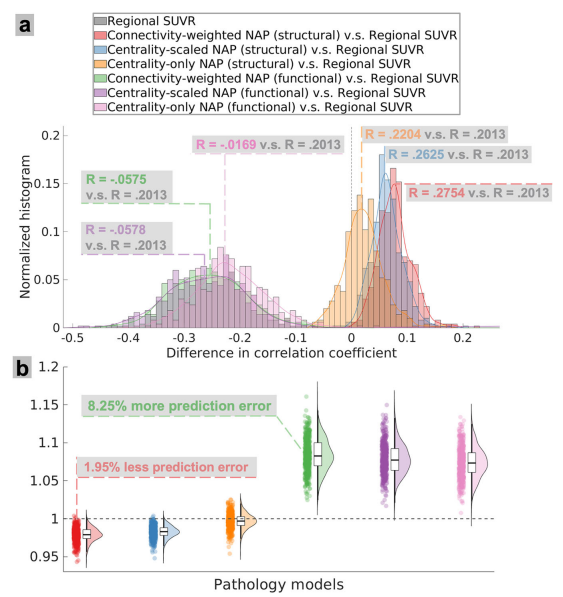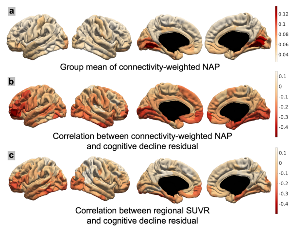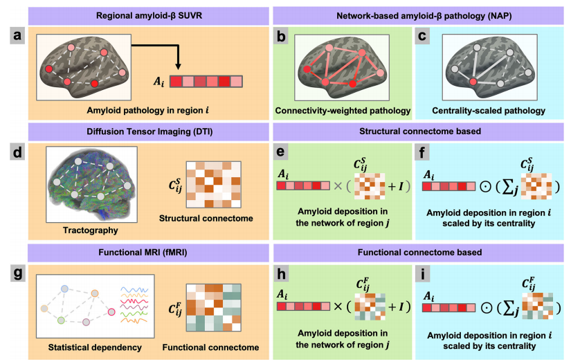 研究者利用扩散磁共振成像获取‌个体化结构连接组‌,利用静息态功能磁共振成像获取‌功能连接组‌,并分别与淀粉样蛋白PET的区域数据结合,生成了基于结构连接和基于功能连接的两类NAP分数。