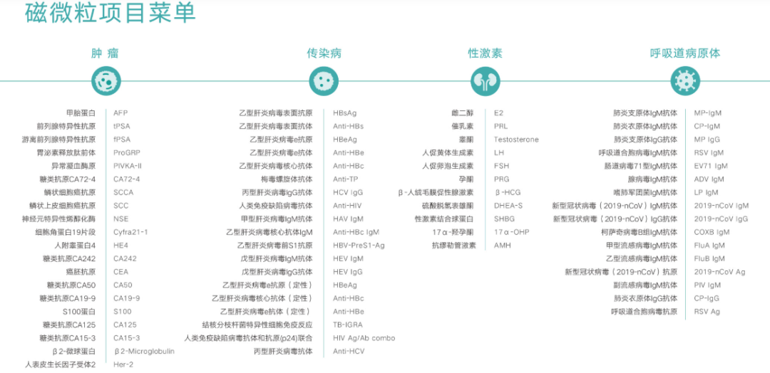 类似的期待还在进行中,根据安图生物的公布目前已构建起传染病、肿瘤标志物、自身免疫、高血压等22个核心检测领域,涵盖223项磁微粒化学发光产品,位居行业第一,未来继续在新兴领域持续拓展,将项目做到400项,提供更全面的检测方案。
